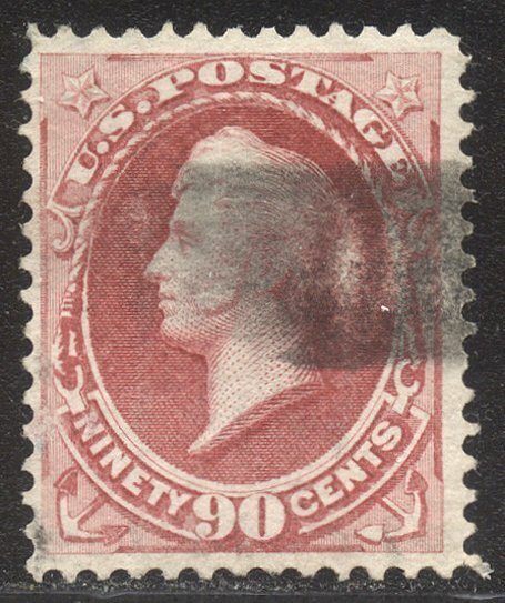 Scott #155: 90c Carmine Centering & Condition: Used. Fine-Very Fine. Reverse (Gum Side): N/A Faults / Imperfections: None The item pictured is the actual item you are purchasing, unless otherwise noted. I also offer an interest-free layaway plan. Ask me about it!" All items purchased will be mailed a day or two after payment is received. --------------------------------------------------------------------------------