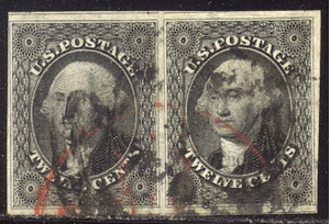 Scott #17: 12c Black, Imperf Centering & Condition: Used. VF/XF Pair with Ample to HUGE margins. Reverse (Gum Side): N/A. Faults / Imperfections: None The item pictured is the actual item you are purchasing, unless otherwise noted. I also offer an interest-free layaway plan. Ask me about it!" All items will be mailed a day or two after payment is received. --------------------------------------------------------------------------------
