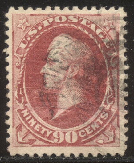 Scott #191: 90c Carmine Centering & Condition: Used. Very Fine. Reverse (Gum Side): Light pencil notation Faults / Imperfections: None The item pictured is the actual item you are purchasing, unless otherwise noted. I also offer an interest-free layaway plan. Ask me about it!" All items purchased will be mailed a day or two after payment is received. --------------------------------------------------------------------------------