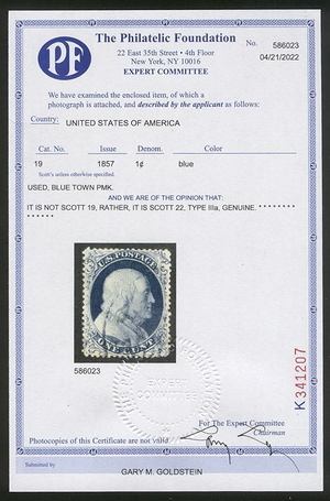 Scott #26: 1c Blue, Type IIIa Centering & Condition: Used. Rich color. Virtually perfectly centered. Extremely Fine and CHOICE! A Foundation certificate accompanies. Reverse (Gum Side): N/A Faults / Imperfections: None The item pictured is the actual item you are purchasing, unless otherwise noted. I also offer an interest-free layaway plan. Ask me about it!" All items purchased will be mailed a day or two after payment is received. --------------------------------------------------------------------------------