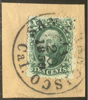 Scott #33: 10c Green, Type III Centering & Condition: Used. Very Fine and CHOICE example tied to piece by Reverse (Gum Side): N/A Faults / Imperfections: None The item pictured is the actual item you are purchasing, unless otherwise noted. I also offer an interest-free layaway plan. Ask me about it!" All items will be mailed a day or two after payment is received. --------------------------------------------------------------------------------
