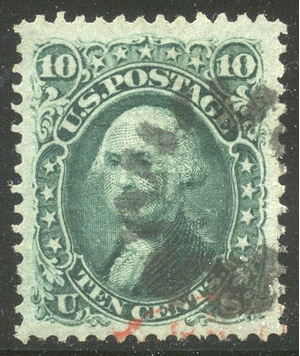 Scott #96: 10c Green w/ "F" Grill w/ Very Thin Paper Centering & Condition: Used. Extremely Fine and CHOICE. A Foundation certificate accompanies. Reverse (Gum Side): N/A Faults / Imperfections: None The item pictured is the actual item you are purchasing, unless otherwise noted. I also offer an interest-free layaway plan. Ask me about it!" All items purchased will be mailed a day or two after payment is received. --------------------------------------------------------------------------------