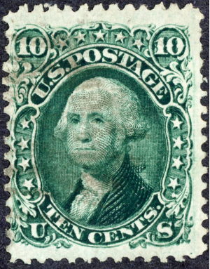 US Scott #68 Type II – 1861 10¢ Green Washington, Used, VG Centering