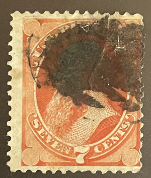 US Stamp 160 Vermilion 7¢ Dusted to Show for no Grill.