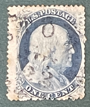 US Stamp 24 Used, Black Town Cancel 1c Franklin, Type V