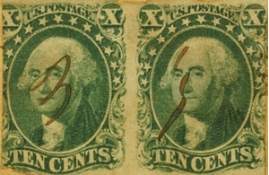 10c Green, Type IV (Scott 16) Position 86L1 with Type III to the right