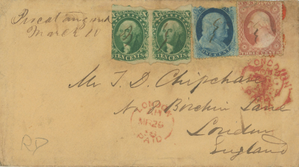US stamp scott #16-15 scarce pair on cover to LONDON , plus very faulty #24 & #26