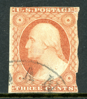 USA 1851 Washington 3¢ Imperf Scott #10 VFU S193