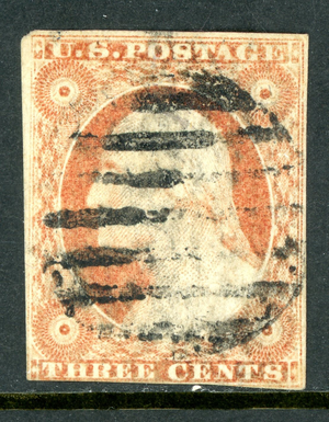 USA 1851 Washington 3¢ Imperf Scott #10 VFU S198