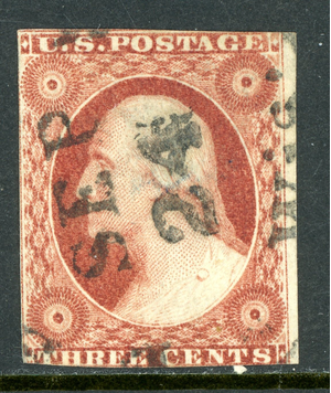 USA 1851 Washington 3¢ Imperf Scott #10 VFU S205