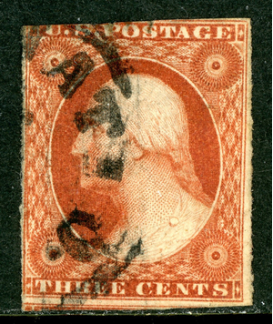 USA 1851 Washington 3¢ Imperf Scott #10 VFU S209