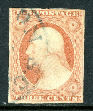 USA 1851 Washington 3¢ Imperf Scott #10A VFU Q451