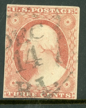 USA 1851 Washington 3¢ Orange Brown double (gd dots B rel br)Scott #11A VFU I251
