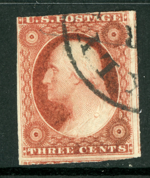 USA 1851 Washington 3¢ Orange Brown Imperf Scott #10 VFU I227