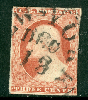 USA 1851 Washington 3¢ Orange Brown Imperf Scott #10 VFU I247
