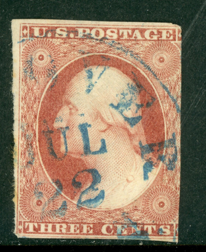 USA 1851 Washington 3¢ Orange Brown Imperf Scott #10 VFU I250