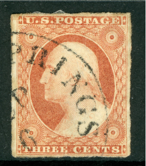 USA 1851 Washington 3¢ Orange Brown Imperf Scott #11A VFU I225