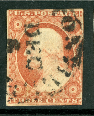 USA 1851 Washington 3¢ Orange Brown Imperf Scott #11A VFU I229