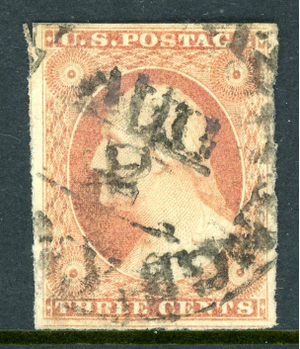 USA 1851 Washington 3¢ Orange Brown Imperf Scott #11A VFU O649
