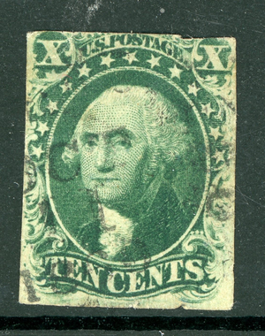 USA 1855 Washington 10¢ Deep Green Type 2 Scott #35 (trimmed) VFU U962