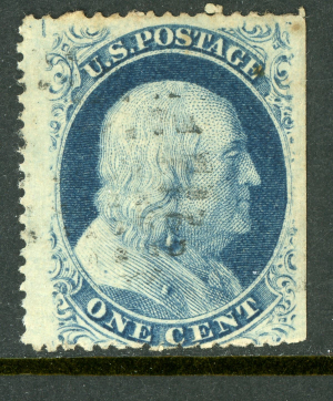 USA 1857 Franklin 1¢ Blue Type V Scott #24 VFU S172