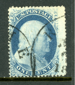 USA 1857 Franklin 1¢ Blue Type V Scott #24 VFU S176