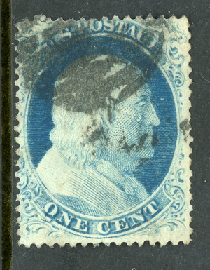 USA 1857 Franklin 2¢ Blue Type IV Sc #23 VFU G17