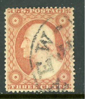 USA 1857 Washington 3¢ Dull Red Scott #26 VFU S261