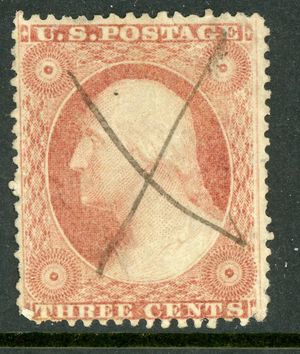 USA 1857 Washington 3¢ Dull Red Scott #26 VFU U157