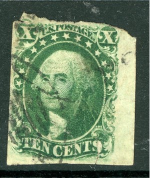 USA 1859 Washington 10¢ Yellow Green Type IV Scott #16 VFU U963