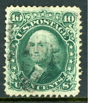 USA 1861 Washington 10¢ Dark Green Grill 14x16 Scott #96 (F Grill) VFU O664
