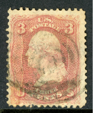 USA 1861 Washington 3¢ Rose Scott #65 VFU R347