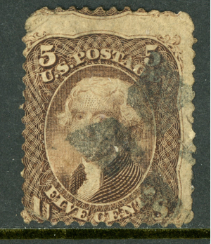 USA 1863 Jefferson 5¢ Brown Scott #76 Used S184