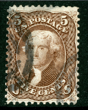USA 1863 Jefferson 5¢ Brown Scott #76 VFU G102