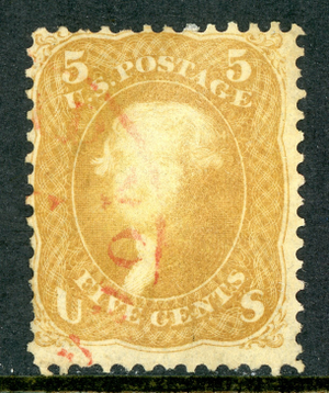 USA 1863 Jefferson 5¢ Buff Scott #67 VFU Q467
