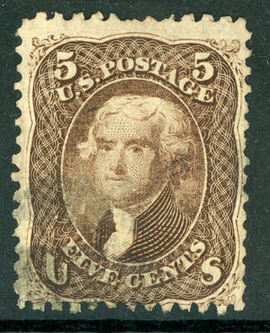 USA 1863 Jefferson 5¢ Dark Brown Scott #76 VFU U975