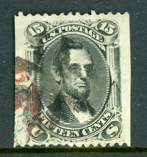 USA 1866 Lincoln 15¢ Black Scott #77 MARGINS!! VFU O652