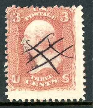 USA 1867 Washington 3¢ Rose "E" Grill Scott #88 VFU S81