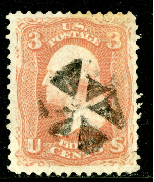 USA 1867 Washington 3¢ Rose "F" Grill Scott #94 VFU S124