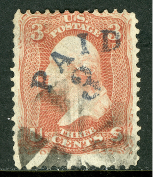 USA 1867 Washington 3¢ Rose "F" Grill Scott #94 VFU S84