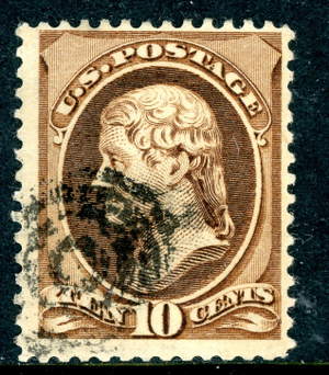USA 1871 Jefferson 10¢ Brown Scott #150 VFU Q215