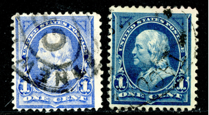 USA 1894 Franklin 1¢ Ultra & Blue Scott #246-47 VFU Q301