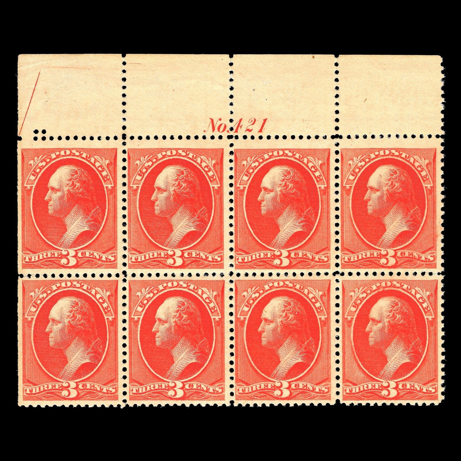 WCstamps: U.S. Scott #214 / 3c Vermillion Block Of 8 F/VF Mint CV $1,270