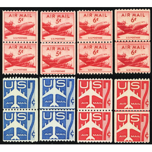 C37//C61, MNH Group of 8 Airmail Coil Prs * Line Prs CV $87.35 - Stuart Katz