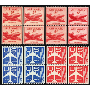 C37//C61, MNH Group of 8 Airmail Coil Prs * Line Prs CV $87.35 *** Stuart Katz