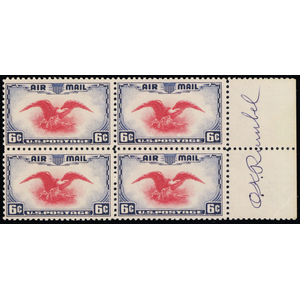C23c, Mint NH 6¢ Ultramarine & Carmine Block - Signed - Stuart Katz
