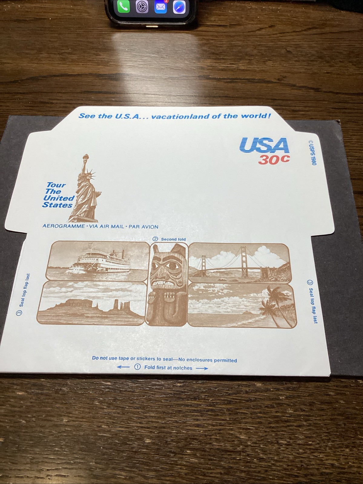 1980's Unused Pre-Stamped Envelope USA 30 Cents Aerogramme Airmail-US. Shipped with USPS Ground Advantage.