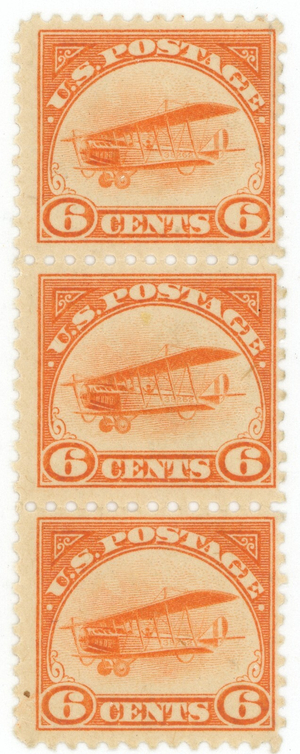 (24166 ) US stamp scott# c1 strip of 3 MNH (6 cent Orange bi-plane)