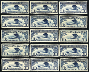C10, Mint NH FVF WHOLESALE Group of 15 Stamps CV $187.50 - Stuart Katz