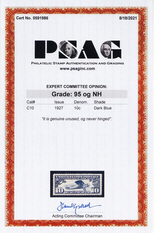 C10 Mint NH XF 10¢ With PSAG Graded 95 Certificate - Stuart Katz